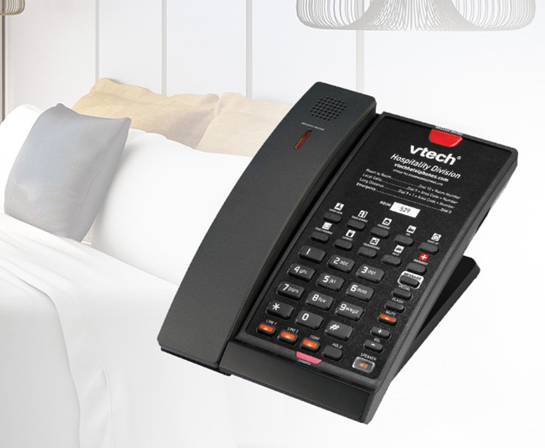 • Fully customizable faceplate for hotel brand and dialing instructions